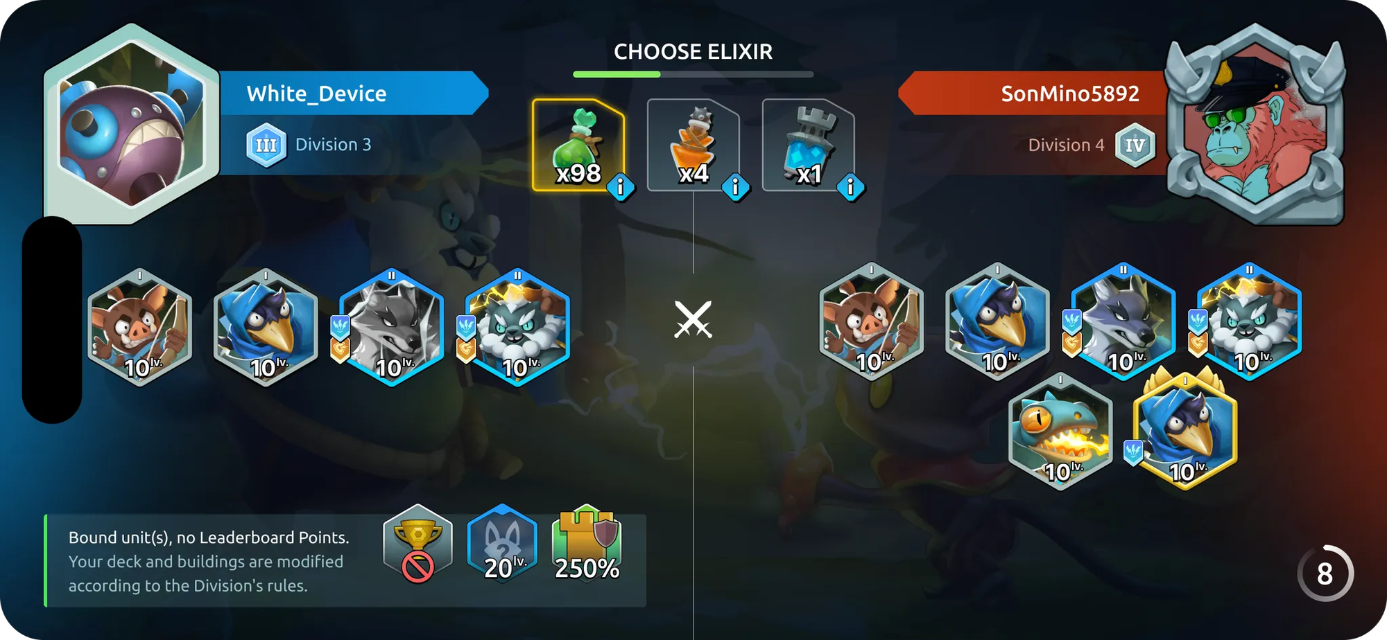 A new layer of strategy has entered the Forest! Elixirs are powerful one-time consumables that can boost your gameplay in Ranked Mode. Choose them wisely to gain an advantage over your opponent!