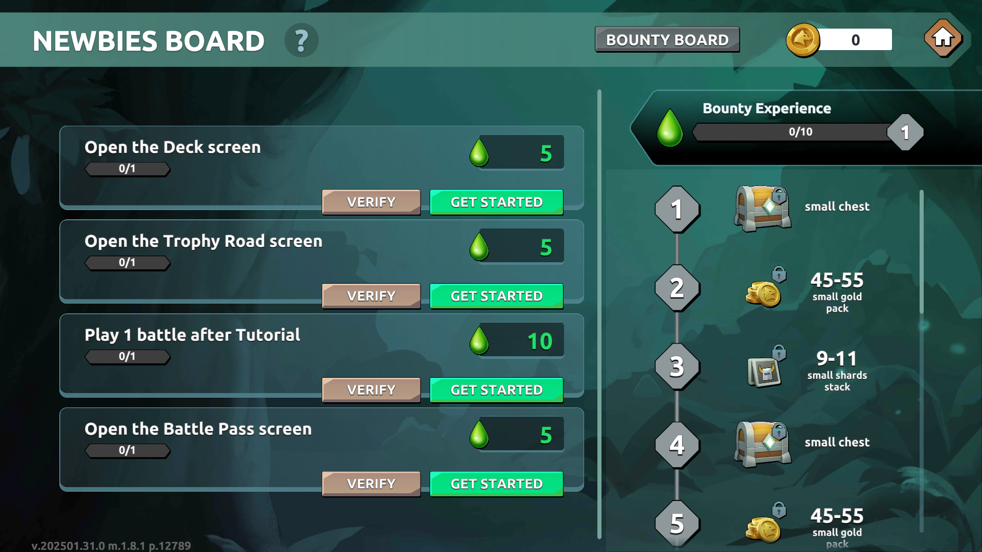 💡 **If you’re not a new player, part of the tasks will be auto-completed for you. But you will need to complete some other tasks to unlock the weekly Bounty Board (usually it takes no more than 5 min to complete those).