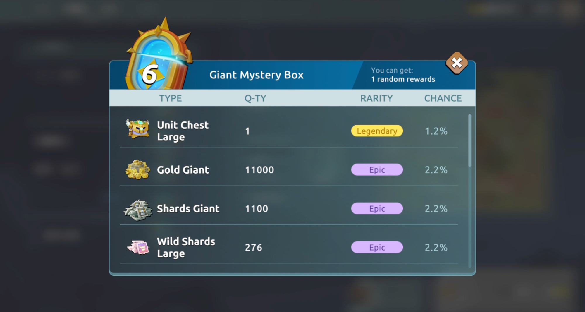 As part of the rewards, you can receive different types of Unit Chests, each containing Units of various rarities. Here are the chances of getting Units from these chests: